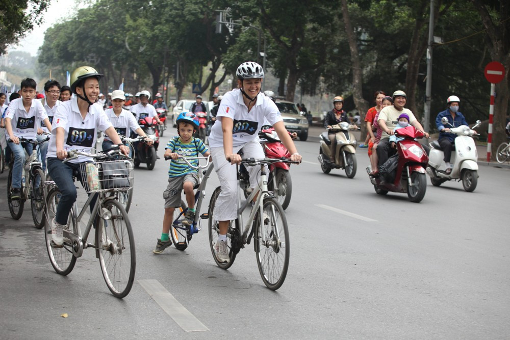 Ba Lis Rosenholm - Phó Đại sứ Đan Mạch tại Việt Nam cùng con trai tham gia đạp xe hưởng ứng Giờ Trái Đất 2013.