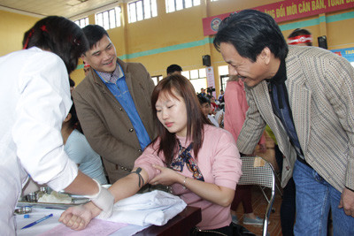 Hội trường Cao đẳng Sư phạm Yên Bái náo nhiệt ngay từ sáng sớm. Dù thông báo của Ban tổ chức đúng 7h30 khai mạc ngày hội hiến máu Chủ Nhật Đỏ, nhưng đã rất nhiều bạn trẻ tươi tắn có mặt trước đó, với mảnh băng-đô “Chủ Nhật Đỏ - báo Tiền Phong” gắn lên đầu khá sành điệu.