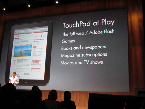 Điểm mạnh dễ nhận thấy của máy tính bảng HP TouchPad so với Apple iPad là khả năng chạy đa nhiệm thực thụ. Hơn nữa, hệ điều hành WebOS đã được cải tiến để thích nghi với các thiết bị có kích thước màn hình lớn hơn.