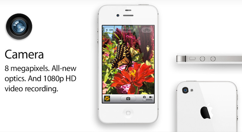 Những nâng cấp nổi bật tiếp theo mà Apple mang đến cho iPhone là camera sau. Camera 5megapixel được thay thế bằng camera độ phân giải lớn hơn, 8megapixel có khả năng quay video độ nét Full HD 1080p thay vì video 720p trước kia. Khả năng quay video của iPhone 4S vẫn thể hiện sự vượt trội với tính năng chống rung và khử nhiễu hình ảnh trong khi quay.