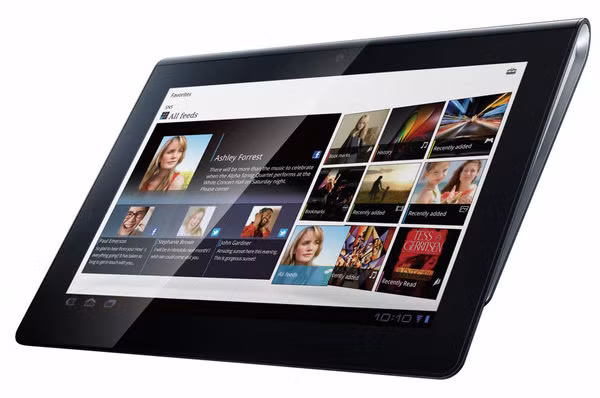 Sony Tablet S có lẽ là chiếc máy tính bảng có ngoại hình “dị” nhất, khác biệt so với loạt danh sách trên. Với hình dáng của một cuốn sách được cuộn lại, Tablet S có phần đầu trên dày hơn nên thao tác cầm cũng thuận tiện.