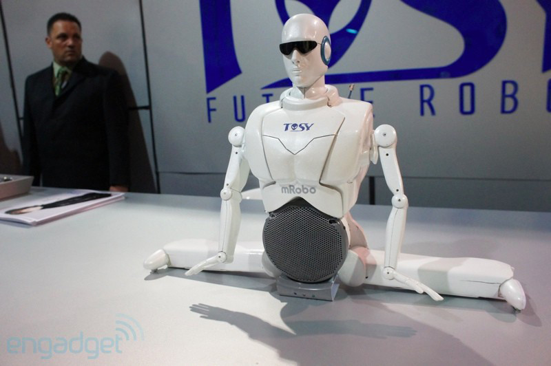 | Có mặt lần đầu tiên tại cuộc triển lãm CES – NewYork, Mỹ nổi tiếng, Công ty CP Robot TOSY trở thành đại diện duy nhất bước chân vào làng điện tử tiêu dùng thế giới đến từ Việt Nam. CES là nơi quy tụ những thương hiệu nổi tiếng như Samsung, LG, Apple… Khi ở chế độ loa, mRobo chỉ nặng 3.3 pounds (khoảng 1.5kg), cao dưới 8 inches một chút (khoảng 20cm), và có bộ nhớ 2GB với âm bass tần số 40Hz. Tuy nhiên, điều kì diệu chỉ thực sự xảy ra một khi nhạc bắt đầu nổi lên, chiếc loa sẽ tự động biến thành một con robot cao 18 inches (khoảng 45cm) và bắt đầu nhảy múa. Đáng tiếc robot này hiện chỉ là mẫu thử nghiệm, tuy nhiên nó dự tính sẽ có giá bán lẻ là $200 sau khi tung ra thị trường vào mùa thu 2012. |