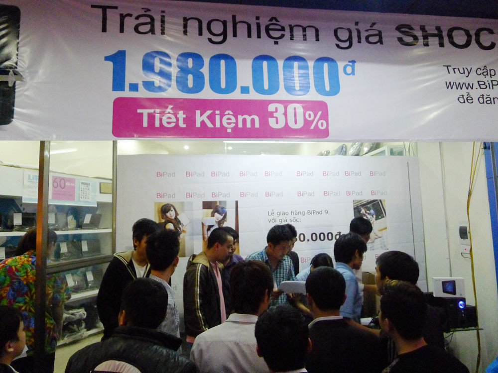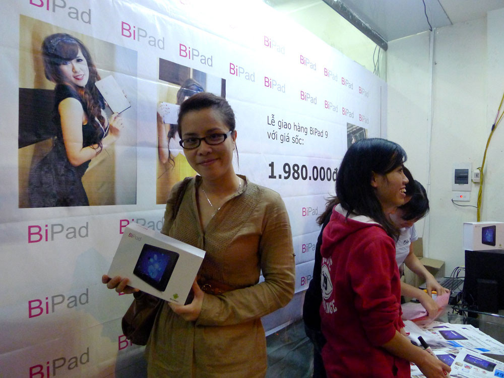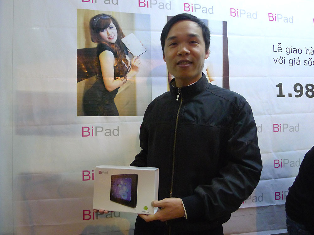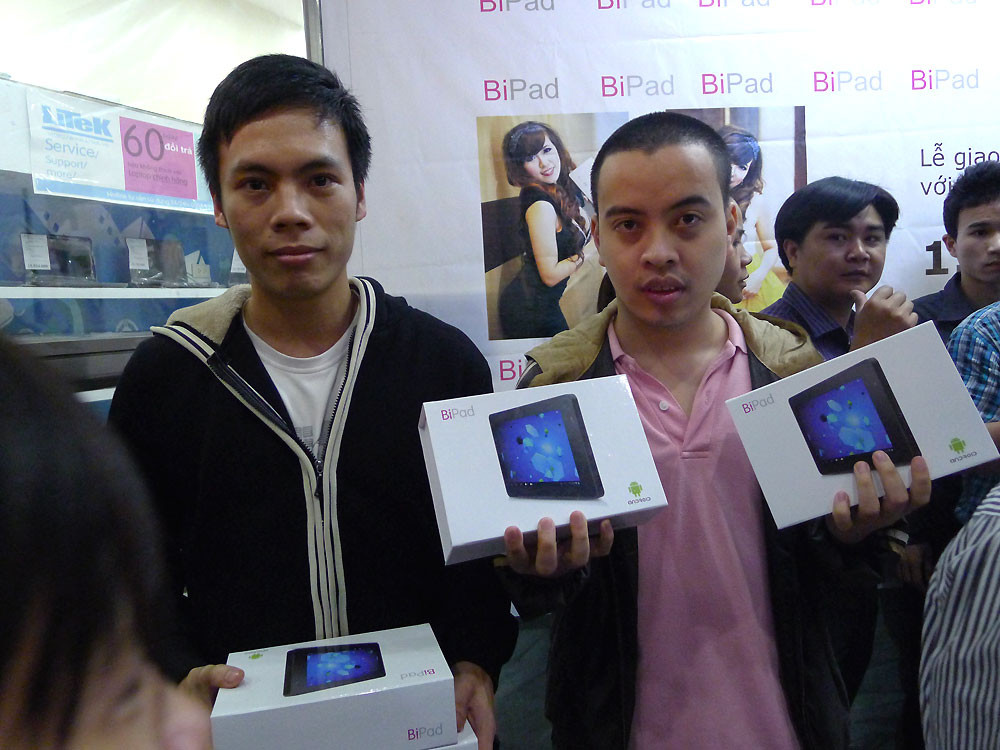 Đúng 18h đến 19h tối qua, 50 sản phẩm máy tính bảng thương hiệu Việt - BiPad đã tới tay các khách hàng Hà Nội. 50 sản phẩm còn lại cũng sẽ được giao tận tay các khách hàng tại khu vực miền Nam trong ngày hôm nay, 9-3-2012.