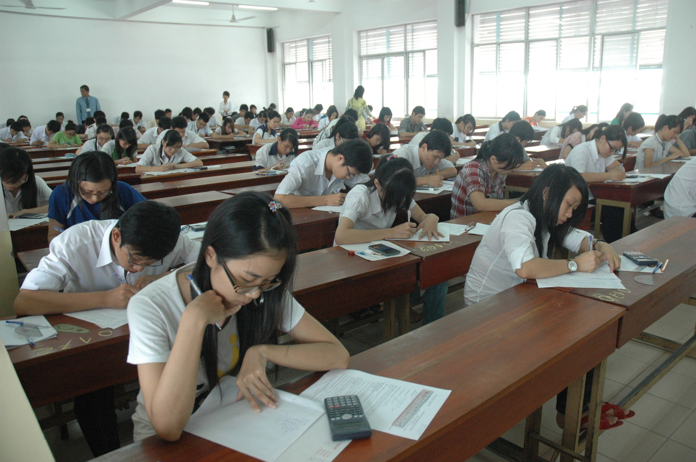 Trong buổi thi sáng nay, tại điểm thi trường THPT Trần Khai Nguyên (điểm thi của trường ĐH Kinh tế TP.HCM) hội đồng thi đã lập biên bản kỷ luật và đình chỉ thi một TS vì mang điện thoại vào phòng thi.