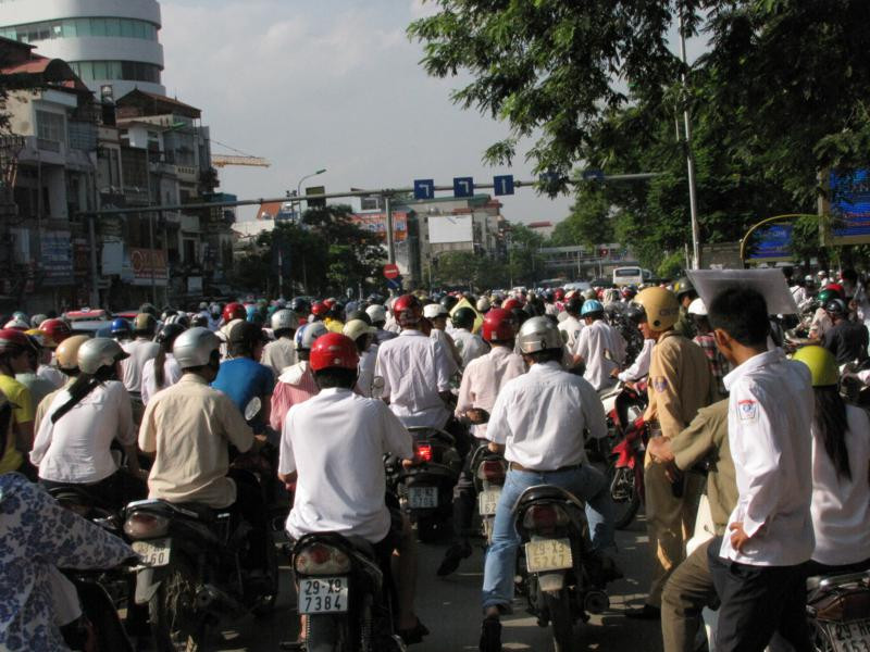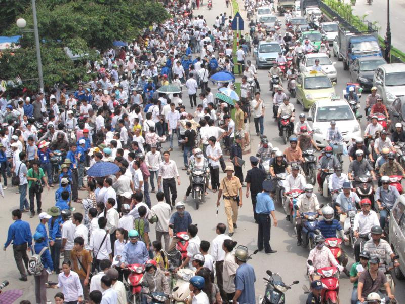 | Nhưng, hết giờ thi, đúng giờ tan tầm, một đoạn dài đường Giải Phóng bị ùn tắc. |