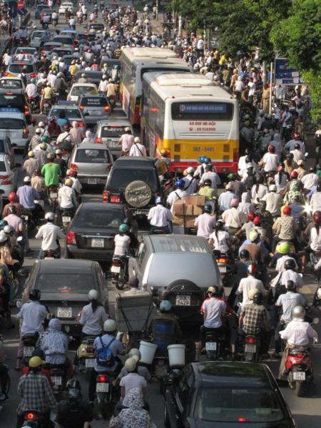 | Người điều khiển phương tiện phải nhích từng mét đường. |