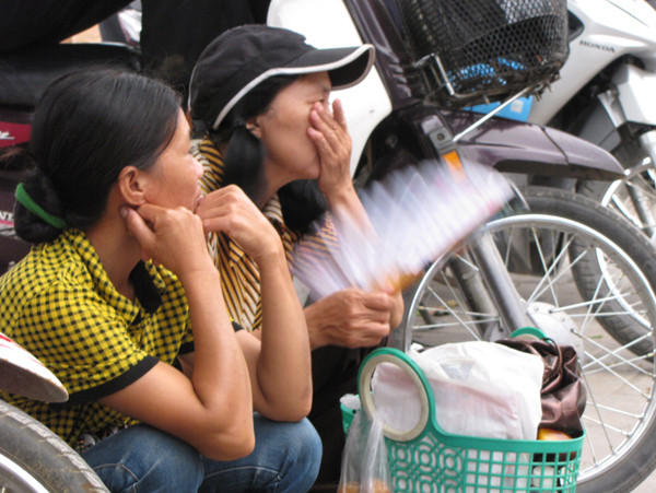 | Những khuôn mặt mệt mỏi lẫn lo âu. Ảnh: Trường Phong. |