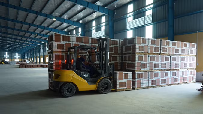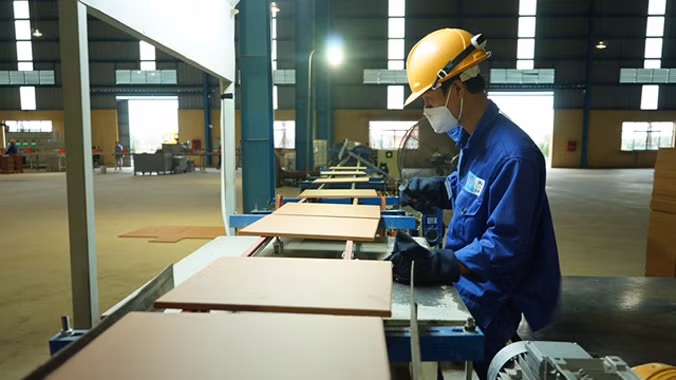 Căn nhà xưởng rộng thênh thang của Công ty cổ phần gạch clinker Viglacera mới đưa vào hoạt động chộn rộn tiếng người tiếng máy chạy. Bên dây chuyền chạy dọc căn nhà xưởng, hàng chục công nhân đang tất bật với những viên gạch ốp lát clinker mới ra lò. Trên dây chuyền sản xuất chạy dọc theo căn xưởng, đất sét được cán thành tấm phẳng lì, qua máy cắt tạo hình ra những viên gạch vuông vắn, rồi chạy thẳng qua hệ thống lò sấy, lò nung để trở thành viên gạch sét nung thành phẩm. Những viên gạch vuông vức, phẳng lì màu đỏ sẫm theo dây chuyền ra bộ phận kỹ thuật kiểm tra, đóng vào hộp giấy xếp vào kho thành phẩm.