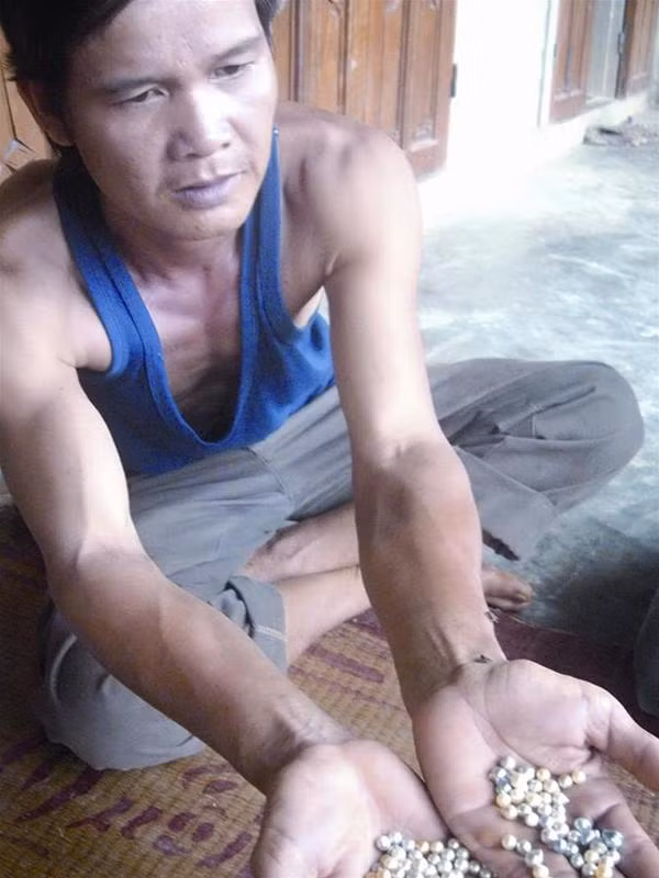 Sản phẩm không có đầu ra, ngư dân chỉ biết đem hàng trăm viên ngọc ra lau chùi mỗi ngày rồi cất trở lại vào ngăn tủ.