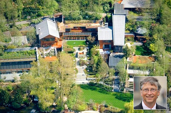 Khu biệt thự rộng hơn 4.600 m2 này của Bill Gates tọa lạc ở Medina, Washington. Theo thông tin từ tạp chí Forbes, khu nhà có tới 8 phòng ngủ, 25 phòng tắm và 6 phòng bếp. Ngoài ra, công trình còn có một phòng ăn rộng hơn 90 m2, thư viện và một bể bơi nhạc nước.