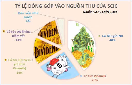 Tổng cộng, hai hoạt động gửi tiết kiệm và lĩnh cổ tức đóng góp 96% nguồn thu cho SCIC.
