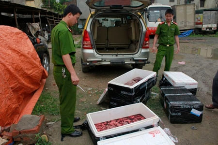 Trưa ngày 10/4, qua kiểm tra tổ công tác thuộc Đội CSĐT tội phạm về quản lý trật tư Kinh tế và Chức vụ - Công an quận Hà Đông (Hà Nội) đã phát hiện trên taxi thuộc hãng taxi Nội Bài, mang biển kiểm soát 30L-8548 có chở 5 thùng xốp, bên trong thùng xốp có chứa số lượng lớn nội tạng động vật đang trong quá trình phân hủy. Trên các thùng xốp có dán tem nhãn của hãng hàng không Vietnam Airlines. Trên tem ghi số hiệu chuyến bay là 738- 76833121, nơi xuất phát được ký hiệu là SGN.