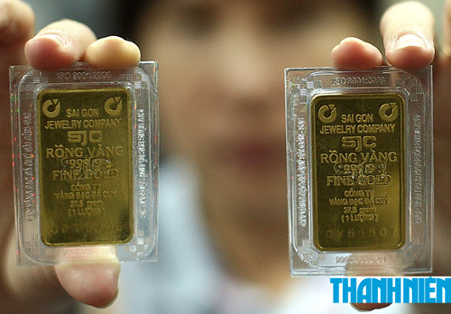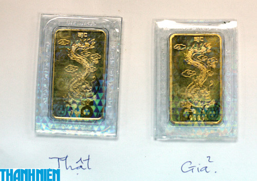| Vàng miếng nhái SJC rất khó phân biệt. Ảnh: Đào Ngọc Thạch. |
