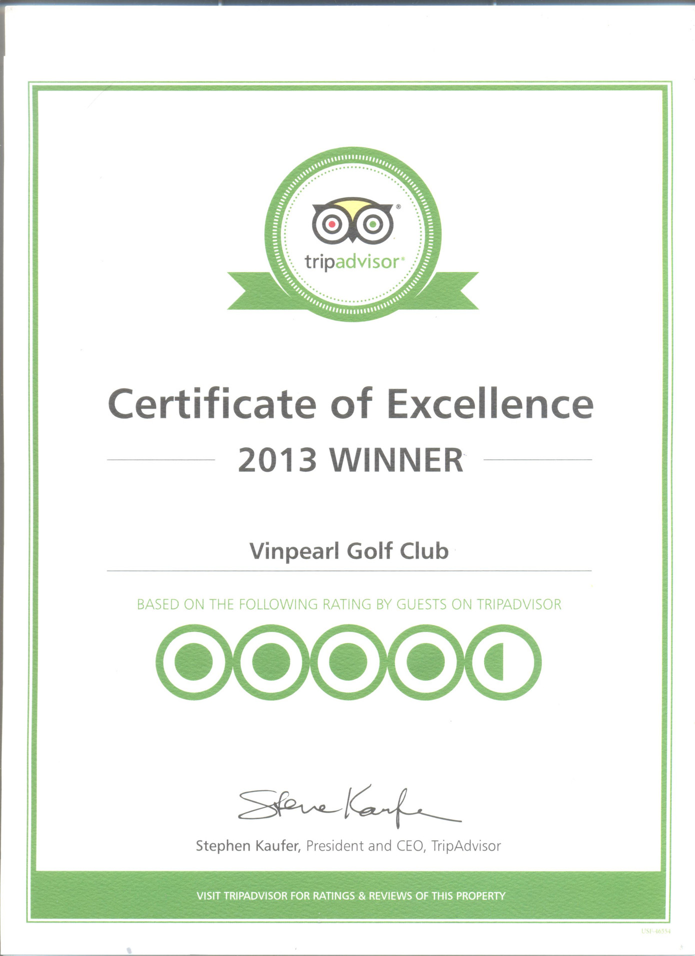 Sân golf Vinpearl vừa được trang web du lịch lớn nhất thế giới TripAdvisor.com (Mỹ) trao chứng nhận xuất sắc (The Certificate of Excellence 2013), dựa vào bình chọn của du khách.