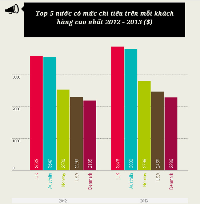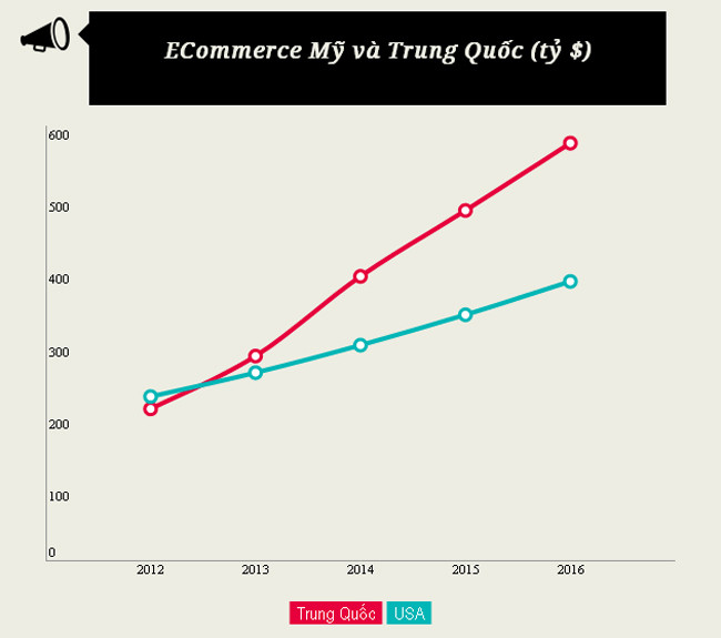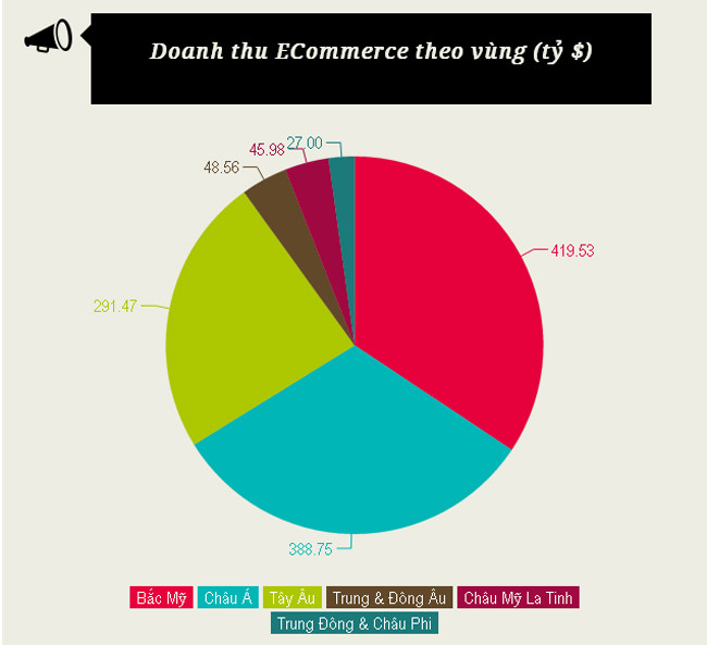 Hai quốc gia mạnh nhất về thương mại điện tử là Mỹ và Trung Quốc, đóng góp gần một nửa trong tổng doanh thu hơn 1.200 tỷ USD toàn ngành năm 2013.