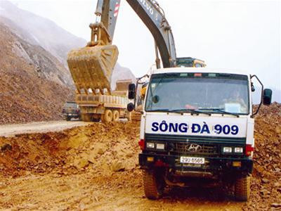 | Thiết bị của Sông Đà 9.09 đang góp sức trên công trường Thủy điện Sơn La. Ảnh: Tất Nguyên |