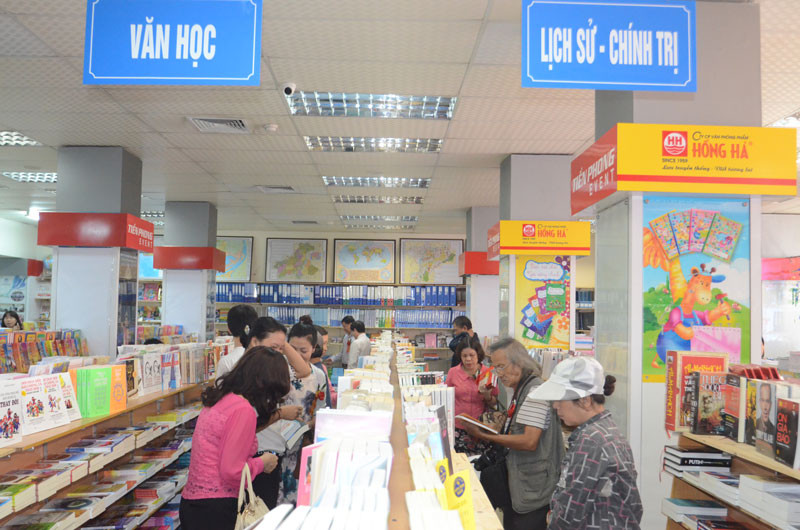| TBT báo Tiền Phong - Lê Xuân Sơn tham quan nhà sách. |