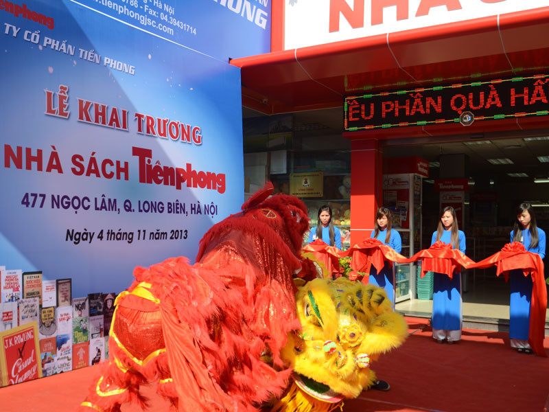 | Lễ cắt băng khai trương nhà sách Tiền Phong thứ 7 tại 477 Ngọc Lâm. quận Long Biên, Hà Nội. |