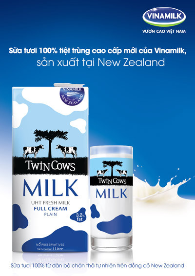 Từ tháng 11/2013, Vinamilk chính thức phục vụ cho người tiêu dùng Việt Nam sản phẩm mới sữa tươi 100% nhãn hiệu Twin Cows được sản xuất ở New Zealand.