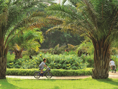 Tại Phú Mỹ Hưng, giữa các khối kiến trúc, yếu tố môi trường đóng vai trò là không gian mở của đô thị, tạo nên những giá trị cộng đồng với sự đồng bộ, cân bằng mà khó có nơi nào có được. (Công viên nội khu biệt thự Mỹ Văn và Mỹ Gia tại Khu Nam Viên).