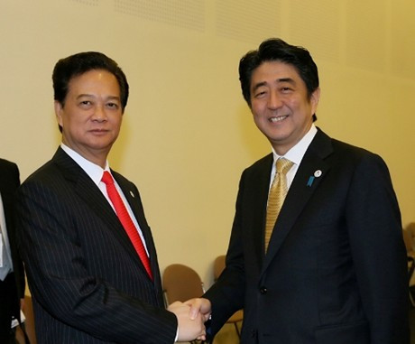 Bộ Ngoại giao Việt Nam thông báo, trong cuộc gặp, hai Thủ tướng trao đổi ý kiến sâu rộng về phương hướng lớn và các biện pháp cụ thể làm sâu sắc hợp tác Việt Nam - Nhật Bản theo tinh thần quan hệ đối tác chiến lược sâu rộng được thiết lập tháng 3/2014, đồng thời nhất trí về tầm quan trọng của việc tiếp tục duy trì thường xuyên các chuyến thăm, tiếp xúc cấp cao.