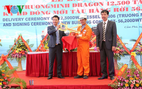 Sáng nay (12/4) tại thành phố Cẩm Phả, tỉnh Quảng Ninh, Công ty Cổ phần công nghiệp Tàu thủy Đông Bắc tổ chức lễ bàn giao tàu hàng Trường Minh Dragon 12.500 tấn và ký hợp đồng đóng mới tàu hàng rời 56.200 tấn. Tàu 56.200 tấn được ký lần này cũng của công ty Công ty cổ phần quốc tế Trường Minh.