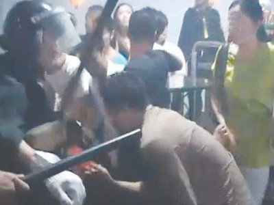 Sau đó, lực lượng chức năng yêu cầu những người có mặt ở yên vị trí, ngồi xuống và đưa hai tay ra sau đầu…Một số chiến sỹ CSCĐ miệng vừa hô “ngồi xuống” vừa vung dùi cui khống chế một người đàn ông mặc thường phục.