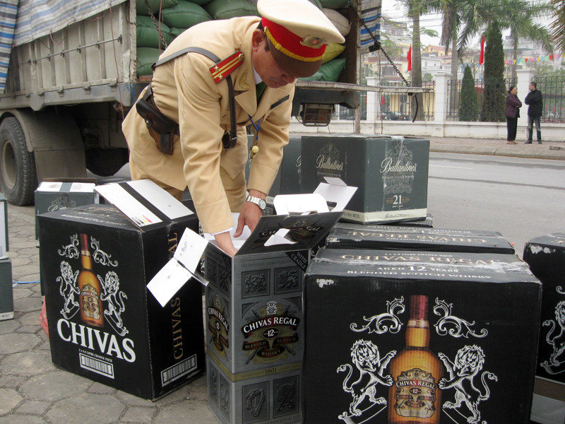 Tại CAQ Hoàng Mai, qua kiểm tra khám xét, cơ quan chức năng phát hiện có tới 120 chai rượu Ballatines loại 1 lít và 24 chai rượu Chivas loại 4,5 lít/chai. Theo một cán bộ của Đội CSKT CAQ Hoàng Mai, toàn bộ giá trị của số hàng trên ước tính lên tới hàng trăm triệu đồng. Vụ việc hiện đang được các đơn vị chức năng giải quyết, xử lý.