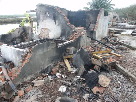 | Hai ngôi nhà của gia đình ông Vươn bị đập phá. |