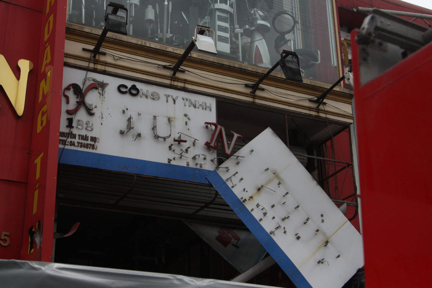 | Mặt tiền hai ngôi nhà trên phố Nguyễn Thái Học hư hỏng nặng. |