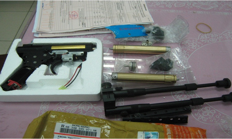 Theo kết quả kiểm tra 3 kiện hàng không có các vận đơn được gửi từ Hồng Kông về cho cùng một người nhận có tên là N.N.L (cư ngụ tại quận Phú Nhuận, TPHCM), cho thấy bên trong chứa linh kiện phụ tùng của súng bắn đạn nhựa, đạn sơn, gồm: lõi súng, ống đồng, mang hiệu “Classical CM02 Electric Gun”. Theo khai báo ban đầu của người nhận thì đây là sản phẩm thuộc dòng súng “Airsoft” loại súng điện tự động (Automatic Electric Guns hoặc gọi tắt là AEG).