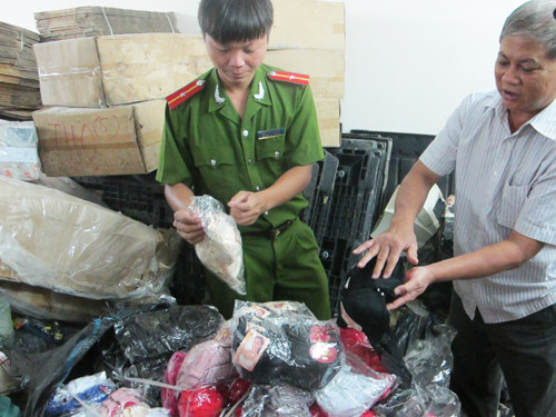 Lúc này trong kho chất đầy áo ngực phụ nữ, ước tính lên đến cả chục nghìn chiếc, trong đó một số đã được đóng vào bao tải để chuẩn bị vận chuyển vào Nam và các tỉnh thành phía Bắc tiêu thụ.