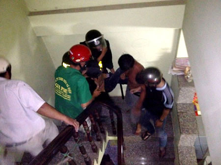 Đến khu vực chợ Thủ Đức trên đường Võ Văn Ngân, xe của CSGT đã đuổi kịp và đạp ngã tên cướp lăn ra đường, tuy nhiên đối tượng này đã bỏ chạy vào hẻm số 25 phường Linh Chiểu, quận Thủ Đức lao vào nhà một người dân rồi lên sân thượng cầm dao cố thủ.