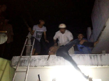 | Hàng trăm người dân tập trung tại khu vực có tên cướp đang cố thủ trong nhà dân. |