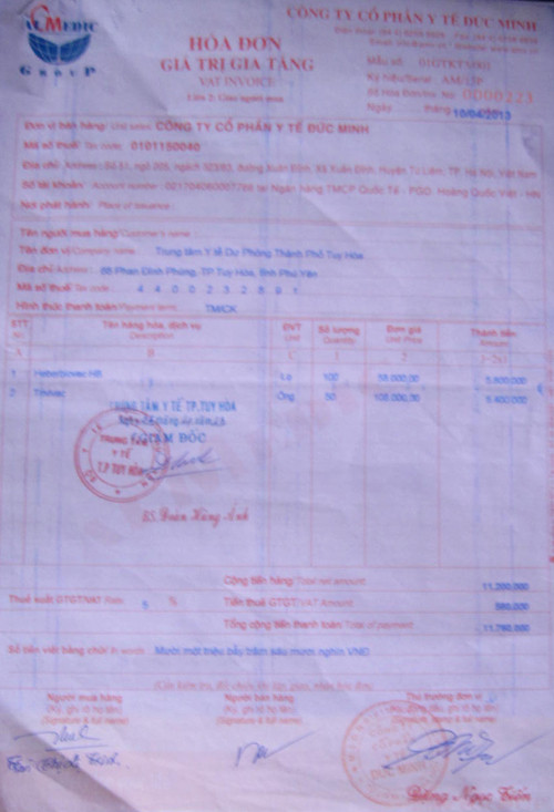 Điều đáng nói là trên hoá đơn xuất hàng của Trung tâm Y tế TP Tuy Hoà ghi hạn sử dụng của thuốc đến ngày 30/6/2013, nhưng không hiểu vì sao lại xuất hiện những hộp vắc-xin có hạn sử dụng đến ngày 30/4/2013 nêu trên. Hiện 48 lọ vắc-xin trong lô hàng đã được sử dụng.