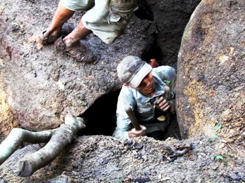 | Đào cả đá và tróc cả gốc cây cổ thụ để tìm trầm - Ảnh: Hiền Lương (Thanh Niên). |