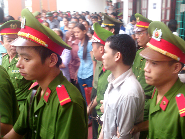 | Các bị cáo được đưa khỏi phiên tòa về nơi tạm giam. |