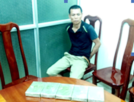 Tiến hành kiểm tra hành chính, tổ công tác đã phát hiện trong túi xách của đối tượng có 5 bánh hình chữ nhật, được ép bằng chất bột màu trắng, bọc bên ngoài bằng túi ni lon.