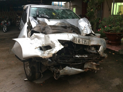 Cú đâm khiến ôtô bị hư hỏng nặng phần đầu, tài xế Thi không bị thương. Lực lượng chức năng phải huy động xe cẩu đến đưa chiếc xe này về cơ quan công an.