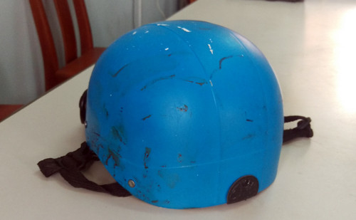 Cảnh sát đã khám nghiệm hiện trường, thu giữ chiếc nón bảo hiểm màu xanh dính máu được cho là của nhóm hung thủ bỏ lại.