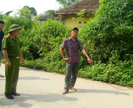Đạo dẫn Công an huyện, Viện kiểm sát đến hiện trường truy tìm vật chứng là con dao gây án.
