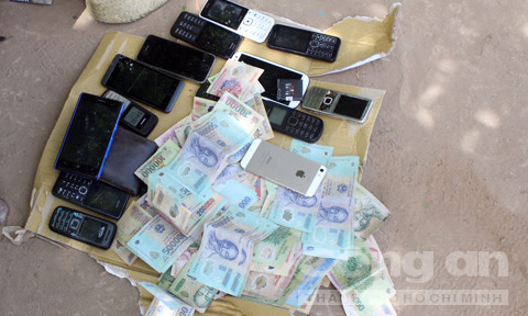 Tại hiện trường, lực lượng công an đã thu giữ tang vật gần 24 triệu đồng tiền mặt, 7 con gà, 01 cân đồng hồ, 04 cặp cựa sắt, 20 băng keo, 24 điện thoại di động và 21 xe mô tô các loại.