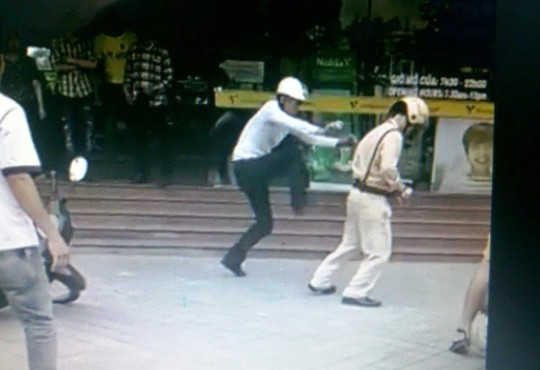 Thiếu tá Hải đã đuổi theo và yêu cầu Độ xuất trình giấy tờ để kiểm tra, nhưng Độ không chấp hành mà còn định lên xe bỏ chạy. Thấy vậy, thiếu tá Hải đã rút chìa khóa xe máy không cho Độ tẩu thoát. Bất ngờ, Độ lao tới ghì cổ quận ngã thiếu tá Hải xuống vỉa hè.