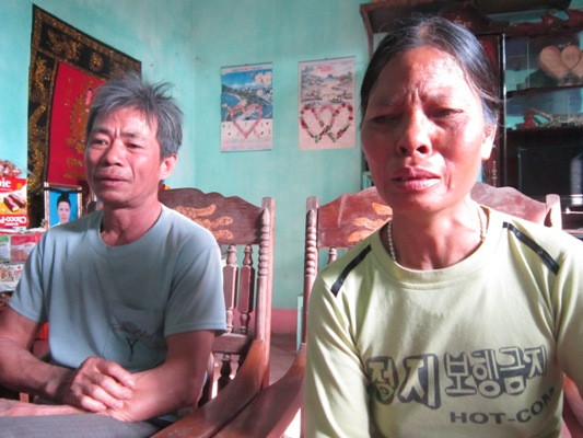 Bố, mẹ Huân bên di ảnh của con trai Lê Đình Huân. Ảnh: Phạm Nhài