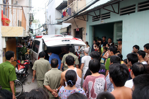 Công an quận Bình Tân cùng các đơn vị chức năng đã có mặt khám nghiệm hiện trường. Gần 17h, thi thể nạn nhân được đưa ra khỏi nhà để phục vụ việc điều tra.