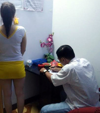 Trong khu vực massage, trinh sát tông cửa vào 2 phòng Vip, bắt quả tang các nữ nhân viên mặc váy ngắn đang kích dục cho khách. Nhiều cô tỏ vẻ e ngại, lí nhí cho biết vừa vào làm việc vài tuần.