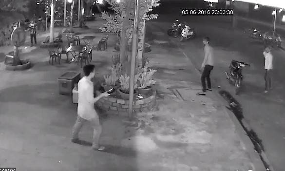 Theo lời người đàn ông này, khoảng 23h ngày 5/6, khi anh đang ngồi ở quầy tính tiền của quán ăn thì có 2 thanh niên đi xe gắn máy đến.