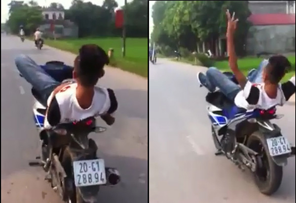 Trước đó, đoạn video dài hơn 1 phút được đăng tải trên mạng facebook ghi lại hình ảnh nam thanh niên không đội mũ bảo hiểm điều khiển xe máy Exciter BKS 20G1-288.94... bằng chân được cho là xảy ra tại Phú Bình, Thái Nguyên.
