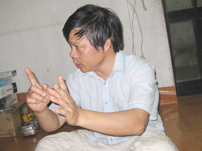 | Thầy giáo Đỗ Việt Khoa khóc trong cuộc trò chuyện với PV Tiền Phong. Ảnh: Nguyễn Dũng. |
