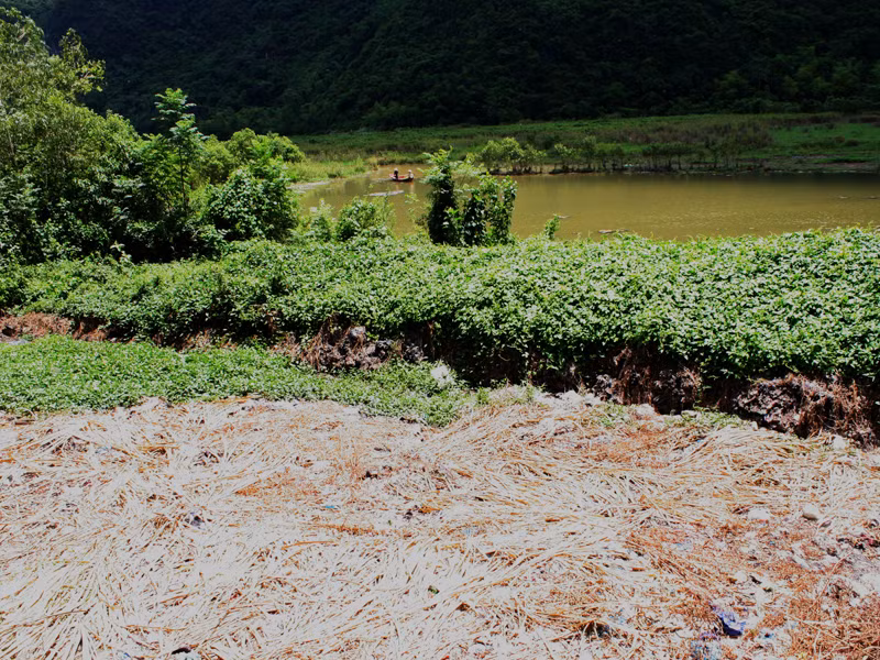 Hố rác lớn nhất hiện nằm sau nhà thường trực bảo vệ ở bến Thiên Trù, cách bến Trò khoảng 400 mét. Chúng tôi có mặt vào một trưa tháng 7 nắng như đổ lửa. Hố rác rộng khoảng 200 mét vuông, được chôn lấp không kỹ, túi ni lông, vỏ đồ hộp lăn lóc trên miệng hố theo gió phất phơ lan ra khu vực xung quanh. Cạnh hố rác khổng lồ là suối Yến.